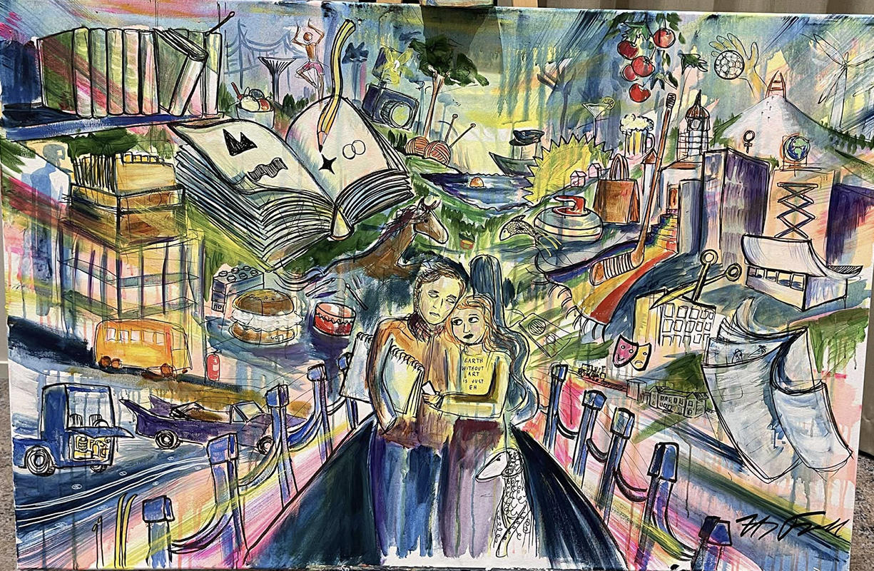 Konstnären och livemålaren Hans Forsell har fått med både platsmänstret och ikonerna i sin bild.