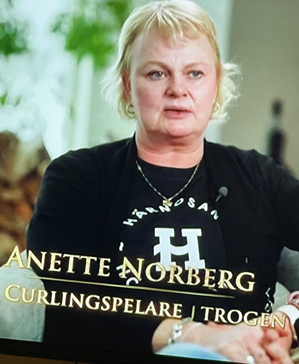 Anette Norberg sprider platsen Härnösand på många sätt, till exempel med Härnösandströjan på i "Förrädarna" på TV...