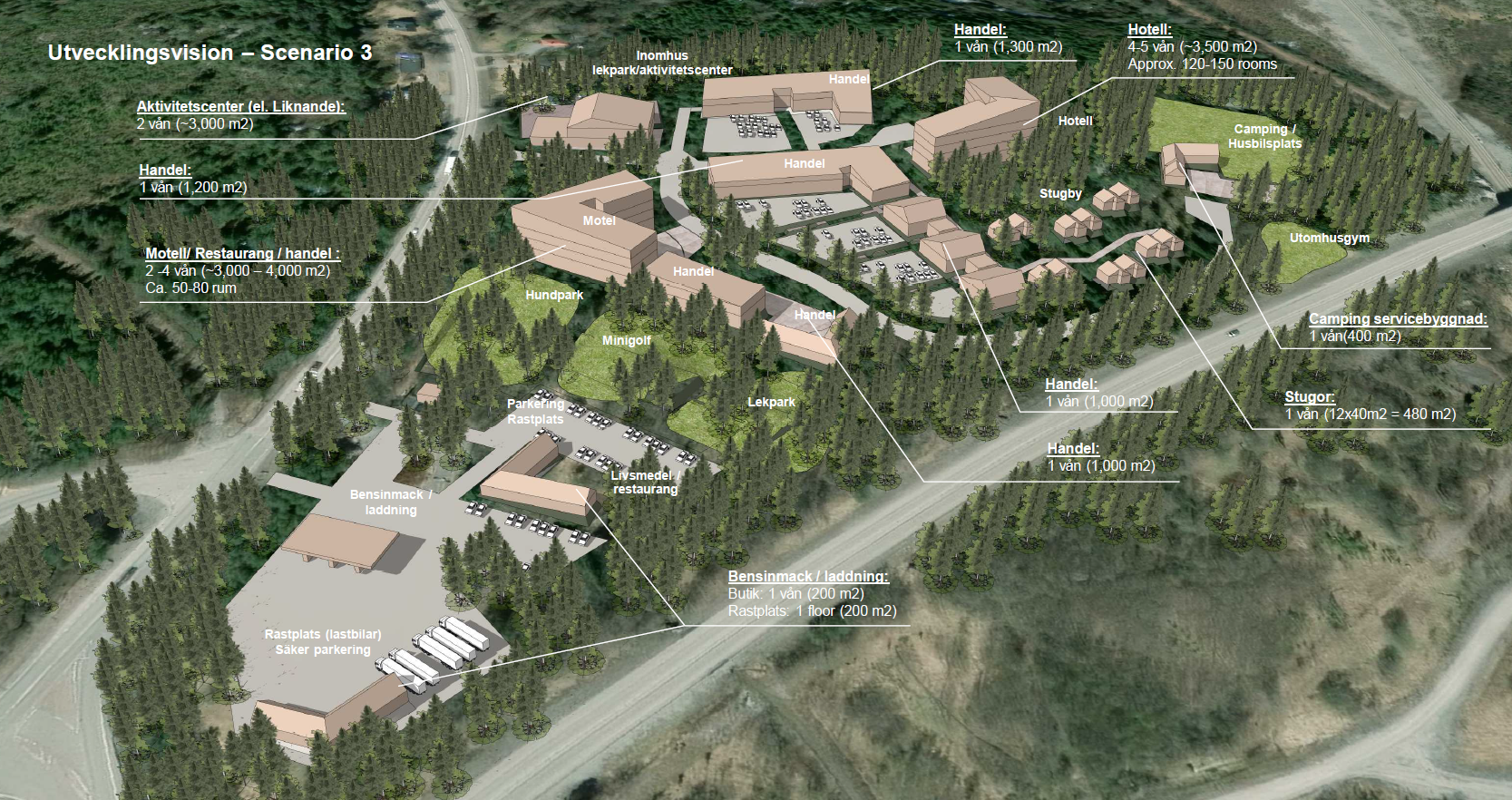 Vid Högakustenbrons södra brofäste finns ett område som lämpar sig ypperligt för en stor och modern rastplats - Destination Högakustenbron. Målbilden är en anläggning med all den service som framtidens trafikanter behöver. Det handlar om en ”mack” med alla typer av drivmedel som efterfrågas, både nu och i framtiden. Det kan också handla om café/restaurang, livsmedelsbutik, annan handel, aktivitetsytor och olika former av boende, till exempel hotell och camping.